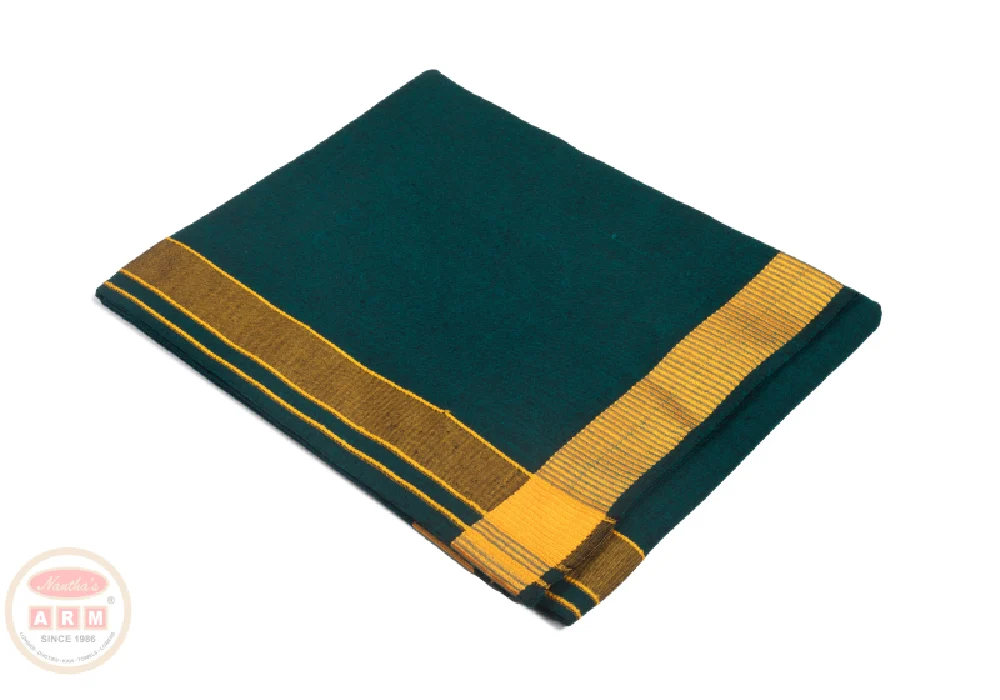 Gold Rajamanickam A/C Dhoties are premium traditional garments renowned for their elegance and comfort. Crafted from high-quality cotton, these dhoties feature a distinctive gold zari border that adds a touch of sophistication, making them ideal for weddings, religious ceremonies, and festive occasions. With their breathable fabric and classic design, they offer both style and comfort, ensuring a dignified appearance during significant events