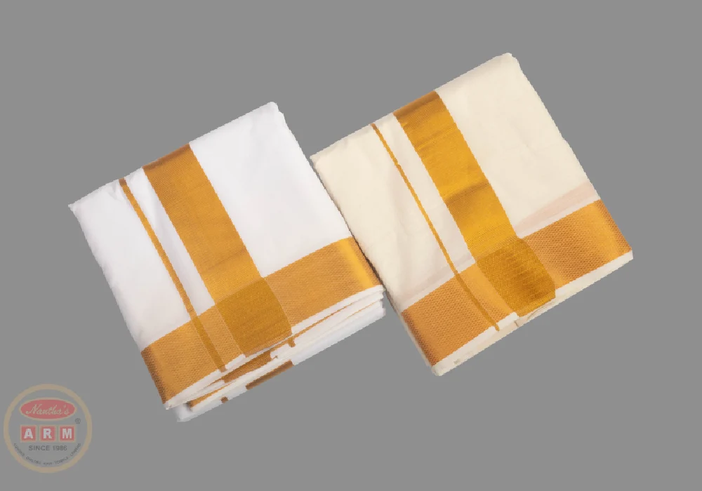 Jari 100K dhoties are premium traditional garments known for their elegant design and cultural significance. Typically crafted from high-quality cotton, they feature intricate borders with 100,000 zari threads, adding a touch of sophistication. These dhoties are ideal for weddings, religious ceremonies, and festive occasions, offering both comfort and a dignified appearance