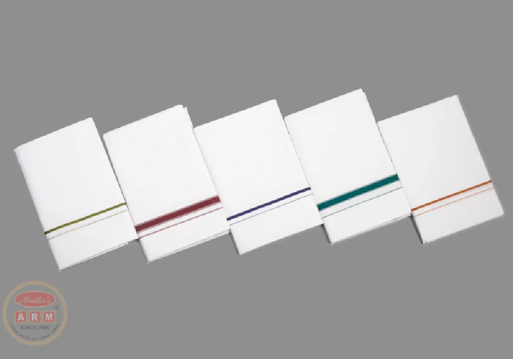 Sunrich Sarathy Dhoties are premium traditional garments known for their superior quality and comfort. Made from 100% cotton, they offer a soft, breathable texture that’s ideal for warm climates and traditional occasions. These dhoties come in a classic white with a subtle white border, without any zari work, offering a refined and understated elegance—perfect for weddings, religious rituals, and cultural celebrations.